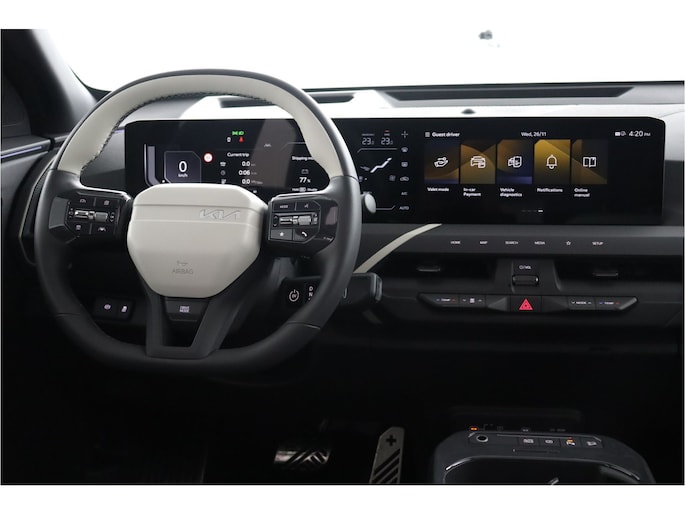Voor een goed en duidelijk overzicht onderweg is het digitale dashboard uitermate slim ingedeeld. Het gebruik van de 360 graden camera op deze auto zorgt voor een groter gezichtsveld en helpt de dode hoeken te elimineren. Adaptive cruise control houdt de ingestelde snelheid vast en houdt automatisch afstand tot uw voorligger. Deze Kia EV5 is voorzien van remote services. Via uw smartphone bedient u diverse functies ook op afstand en krijgt u informatie over de status van uw auto. Onder alle omstandigheden een volmaakt geluid onderweg: het high performance audiosysteem zorgt ervoor. U bent in deze Kia ook voorzien van dashboard met spraakbediening, full map navigatiesysteem, kruisend verkeer detectie, electronic climate control, draadloos opladen en regensensor.