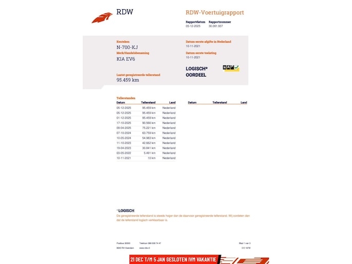 Kilometerstand gecontroleerd