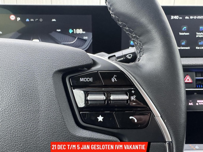 Voor extra luxe beschikt deze EV6 over verwarmde en geventileerde voorstoelen, een verwarmd stuurwiel en stijlvolle sfeerverlichting. LED-koplampen zorgen voor uitstekend zicht, terwijl de achteruitrijcamera het parkeren eenvoudig maakt.