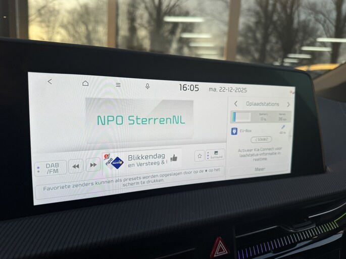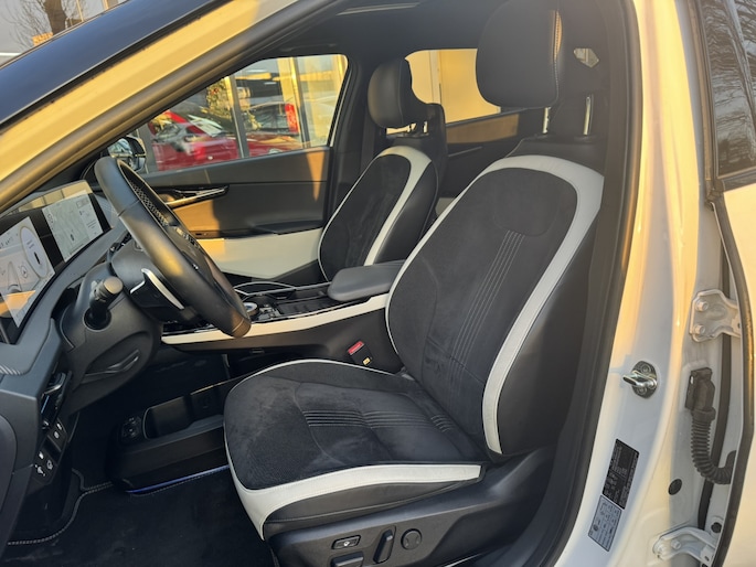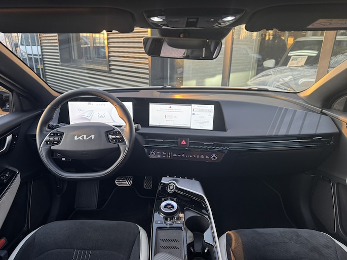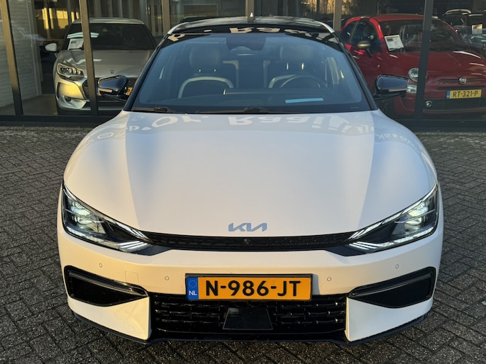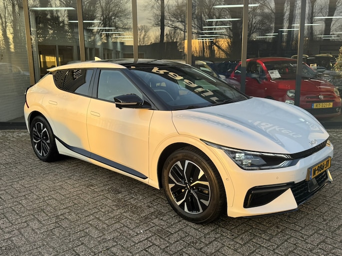Elektrisch vermogen of onderscheidend vermogen? De Kia EV6 heeft het allebei in overvloed. U hoort slechts het lichte gezoem van de elektromotor tijdens het rijden. Een krachtige motor geeft deze auto zijn sportieve prestaties. Boven uw hoofd schuiven de wolken zichtbaar voorbij door het elektrisch bediende glazen panorama dak. En kijk eens aan de achterzijde wat gemakkelijk: een eveneens elektrisch bedienbare achterklep! Op zelfs de koudste ochtend biedt de stoelverwarming een heerlijk welkom. Ook achterin heerst een luxe sfeer, vanwege de verwarmde achterbank. De slimme koplampen gebruiken de allernieuwste matrix LED-verlichting. Altijd maximaal zicht, nooit verblinding bij de tegenligger. Bij de zeer complete uitrusting van deze auto behoren ook 19 inch lichtmetalen velgen, halflederen bekleding, warmtewerend glas, in delen neerklapbare achterbank, LED-achterlichten en verstelbare lendensteunen. De 360 graden camera kan het blinde vlek probleem van de achteruitkijkspiegel oplossen, waardoor ongevallen worden voorkomen. Adaptive cruise control houdt de ingestelde snelheid vast en houdt automatisch afstand tot uw voorligger. In de file rijden vreet concentratie. Daarom komt de file assistent te hulp om veilig afstand te houden en automatisch te stoppen als uw voorligger stilstaat. Dankzij Connected Services weet u precies waar uw auto geparkeerd staat. Ook andere functies, zoals bandenspanning en brandstofniveau, zijn via de app altijd onder handbereik. Voor een krachtige en natuurlijke geluidsweergave zorgt het high performance audiosysteem. Met full map navigatiesysteem, kruisend verkeer detectie, electronic climate control, schakelpaddles aan het stuur, draadloos opladen en DAB ontvangst is deze Kia helemaal compleet.