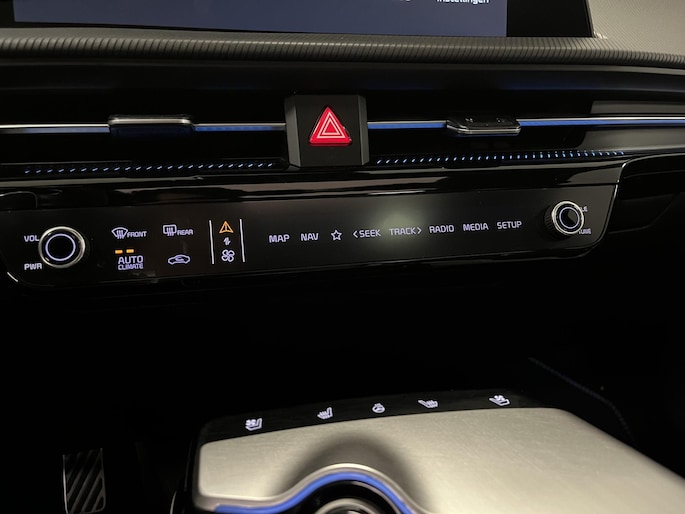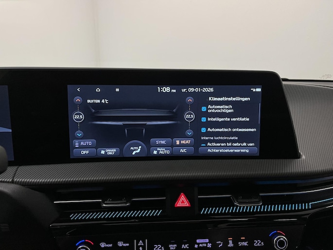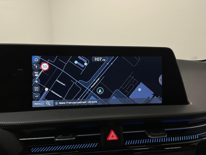Met de 360 graden camera op deze auto wordt parkeren in smalle parkeerplekken een makkie dankzij het optimale zicht dat het apparaat levert. Adaptive cruise control houdt de ingestelde snelheid vast en houdt automatisch afstand tot uw voorligger. Na een lange werkdag in de file: daar zit niemand op te wachten. Gelukkig helpt de file assistent een handje. Het radarsysteem meet de ruimte tot de voorligger en bewaakt de juiste afstand. Stilstaan? Dan remt en stopt de auto vanzelf. Als u regelmatig met een aanhanger of een fietsendrager op pad bent, is de afneembare trekhaak een praktische extra. Locatie, motorconditie, storingen... via Connected Services krijgt u alle vitale info over de auto door. Ook handig bij pech! Deze Kia is voorzien van Meridian audio systeem, full map navigatiesysteem, kruisend verkeer detectie, electronic climate control, draadloos opladen en DAB ontvangst.
