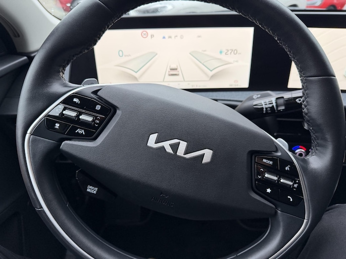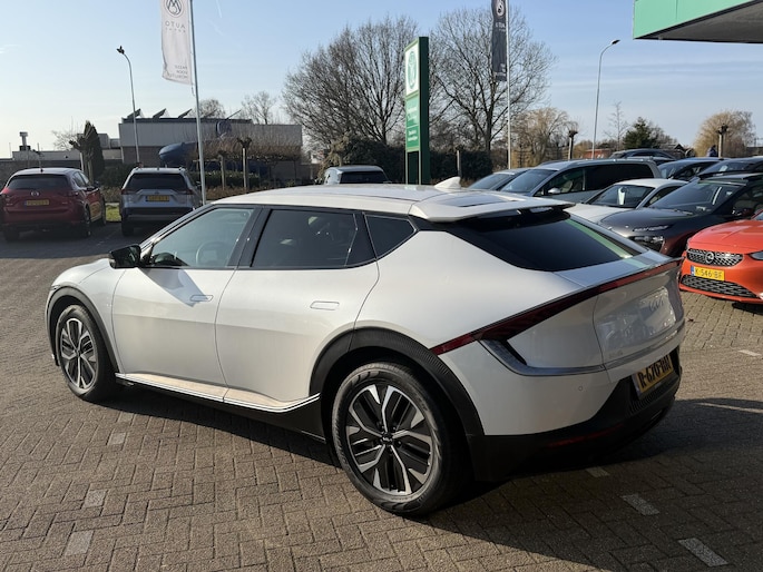 Druk het gaspedaal in en voel de fenomenale kracht van de elektromotor. In een elektrische auto rijdt u tegelijk dynamisch en ontspannen. De techniek van deze auto is radicaal anders dan u gewend bent. U rijdt zacht zoemend naar uw bestemming, de actieradius van de accu's is ruimschoots voldoende voor de meeste dagelijkse ritten. 's Winters op pad gaan kan een behoorlijke uitdaging zijn. Daarom is deze Kia EV6 voorzien van weldadige verwarmbare voorstoelen. Koude handen? Da's voorbij met het verwarmd stuurwiel. Pak aan! De uitmonstering van deze auto wordt gecompleteerd door onder meer 19 inch lichtmetalen velgen, LED koplampen, warmtewerend glas, in delen neerklapbare achterbank, LED-achterlichten en verstelbare lendensteunen.