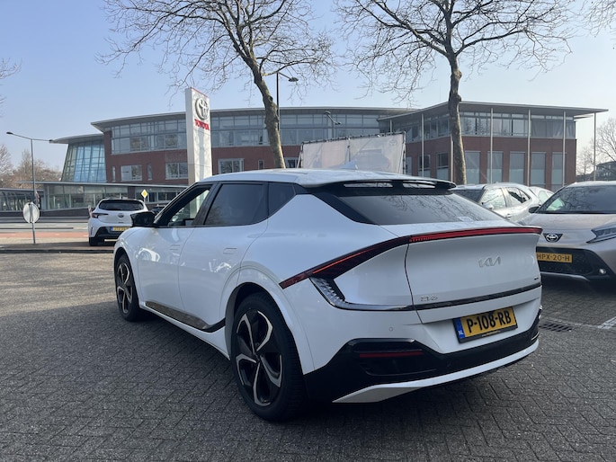 Wat een gemak, die achteruitrijcamera. Alles in beeld zonder capriolen. Als u de adaptive cruise control inschakelt, regelt de auto zelf de snelheid en de afstand tot de auto voor u. Rijden-stilstaan, rijden-stilstaan. Niks is irritanter en vermoeiender dan filerijden. Daar heeft deze Kia EV6 een oplossing voor: de file assistent, die met radarmeting permanent het tempo aanpast op de voorligger. Zelfs als die stopt. Wat is de onderhoudsstatus van deze auto? U checkt het snel, simpel en overal via uw smartphone. Selecteer uw reisbestemming en het full map navigatiesysteem brengt u snel waar u moet zijn. Wat u ook in deze auto kunt vinden zijn electronic climate control, DAB ontvangst, regensensor, keyless entry en automatisch dimmende binnenspiegel.