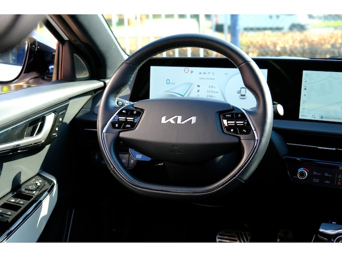 De nieuwste veiligheidssystemen komen in deze Kia EV6 samen. Dat de auto steeds meer taken van de bestuurder overneemt, merkt u bijvoorbeeld aan het systeem voor verkeersbord-detectie in deze auto. Een fietser of ander voertuig in de dode hoek ziet u gemakkelijk over het hoofd. De actieve dodehoekdetectie signaleert meteen elke risicosituatie. In een noodsituatie waarschuwt forward collision warning bij een dreigende aanrijding met een voorligger. Bovenop deze veiligheidsfeatures heeft deze Kia bovendien head-up display, vermoeidheidsherkenning, frontale botsbescherming en bandenspanningcontrolesysteem.
