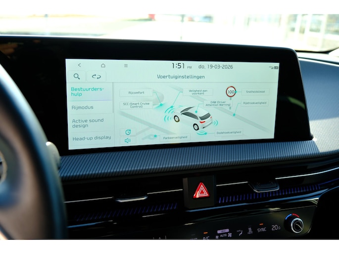 Omdat ze auto's bouwen van hoge kwaliteit, hebben de Koreaanse automerken zich een goede reputatie verworven in Europa. Dankzij de stoelverwarming, verwarmbare achterbank en het verwarmbare stuur in deze auto, krijgt het begrip rijcomfort een nieuwe betekenis. Dankzij het elektrisch bediende glazen panoramadak lijkt het of u altijd met open dak rijdt. Een praktische extra is de elektrisch bedienbare achterklep die opent en sluit met een druk op de knop. Opvallend is de geavanceerde matrix LED-verlichting met daglichtkwaliteit. De koplampen dimmen automatisch het deel van de lichtstraal waar voor- of tegenliggers in rijden. De overige segmenten blijven aan en verlichten de weg maximaal. Tot de voorzieningen van deze auto behoren warmtewerend glas, in delen neerklapbare achterbank, LED-achterlichten en verstelbare lendensteunen.