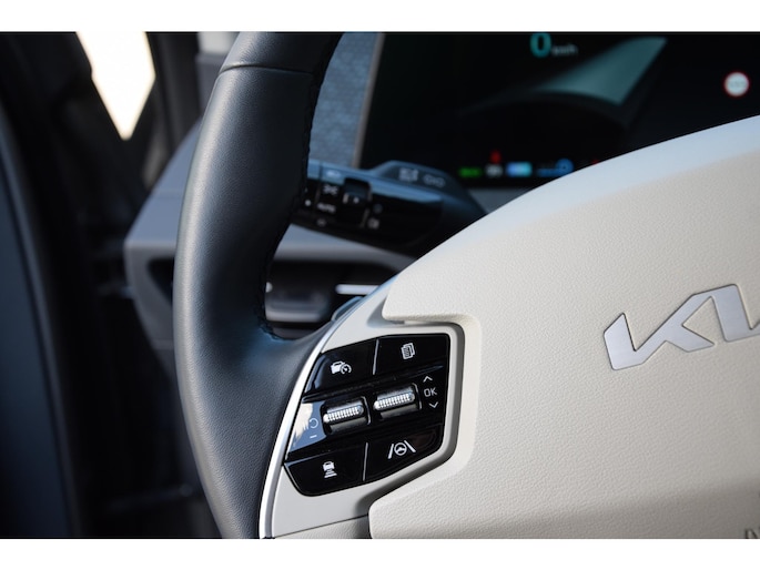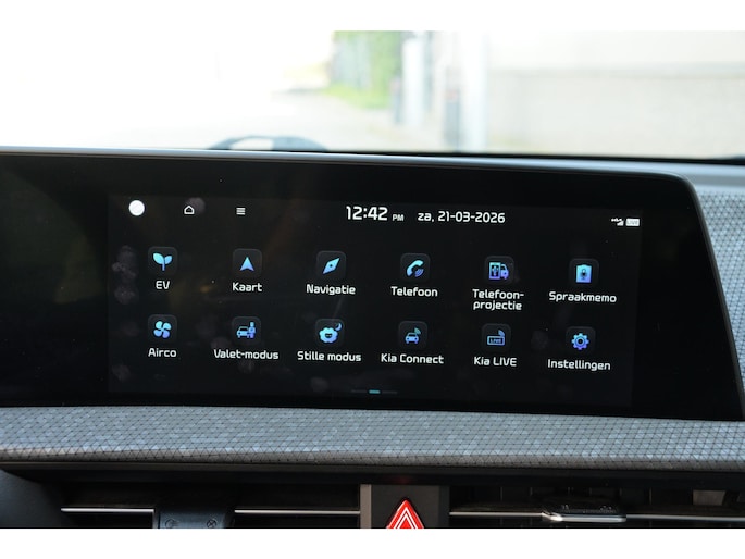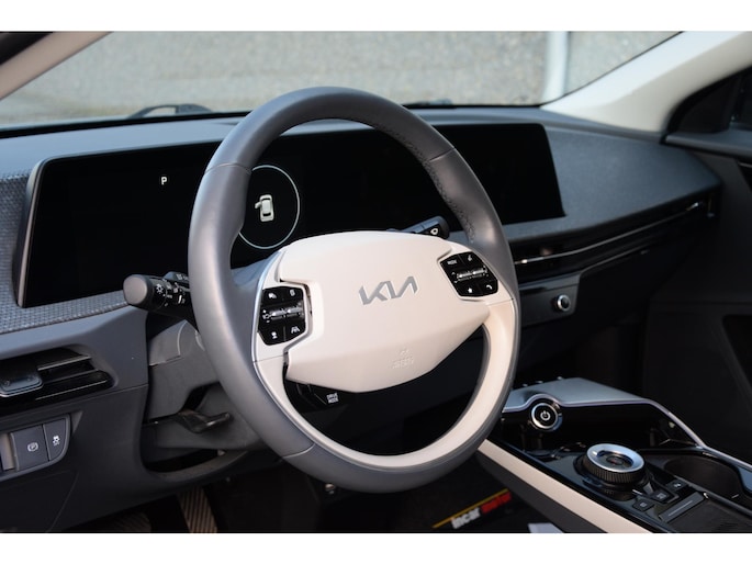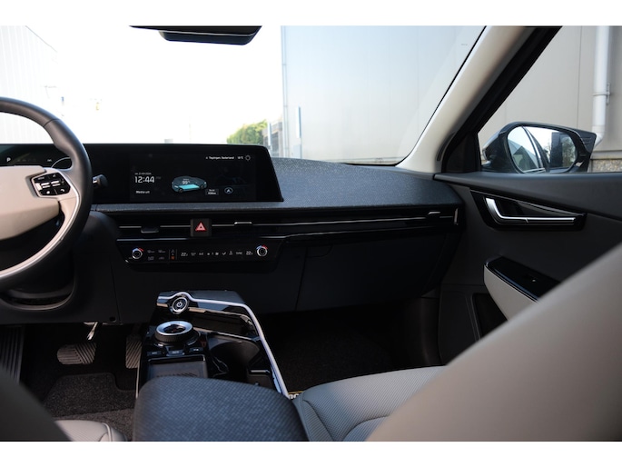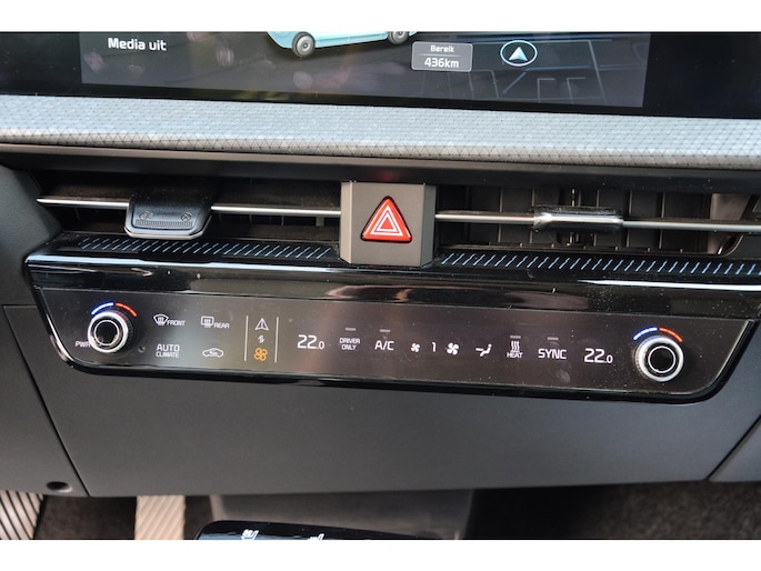 Met het digitale dashboard in deze auto kunt u de interface van uw cockpit personaliseren. Twijfelen hoeveel ruimte u achter de auto heeft? Met de achteruitrijcamera weet u altijd hoeveel centimeter! Met adaptive cruise control houdt de auto zelfstandig afstand tot uw voorligger. Een veiligheidsverhogende optie waarmee u comfortabel onderweg bent. Rijden-stilstaan, rijden-stilstaan. Niks is irritanter en vermoeiender dan filerijden. Daar heeft deze Kia EV6 een oplossing voor: de file assistent, die met radarmeting permanent het tempo aanpast op de voorligger. Zelfs als die stopt. Vanaf elke plek contact maken met deze auto: dat kan met behulp van remote services, die u simpel activeert met uw smartphone. En deze auto heeft ook dashboard met spraakbediening, premium audiosysteem, full map navigatiesysteem, electronic climate control, DAB ontvangst en regensensor als standaard uitrusting.