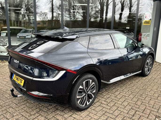 Kijk naar het design, de keuze in modellen en natuurlijk de gunstige prijsstelling. Dan weet u: Kia, Movement that inspires. Stil en stevig optrekken zonder extra uitstoot? De elektromotor zorgt ervoor! Een krachtige motor geeft deze auto zijn sportieve prestaties. Deze Kia EV6 legt bestuurder én bijrijder compleet in de watten met de verwarmbare voorstoelen. De bagageruimte is toegankelijk via een comfortverhogende elektrische achterklep. Niet alleen u, maar ook uw passagiers zitten goed, dankzij de verwarmde achterbank. Tot de voorzieningen van deze auto behoren 19 inch lichtmetalen velgen, LED koplampen, warmtewerend glas, in delen neerklapbare achterbank, LED-achterlichten en verstelbare lendensteunen. Omdat goed geïnformeerd rijden tegenwoordig om veel meer draait dan alleen snelheid en brandstofpeil, laat het digitale dashboard alle functies zien die u nodig heeft. Bij het inparkeren laat de achteruitrijcamera precies zien hoeveel meter... decimeter... centimeter ruimte er nog is! Adaptive cruise control houdt de ingestelde snelheid vast en houdt afstand tot het voertuig voor u. In de file rijden vreet concentratie. Daarom komt de file assistent te hulp om veilig afstand te houden en automatisch te stoppen als uw voorligger stilstaat. De conditie van deze auto is 24/7 inzichtelijk dankzij Connected Services. Natuurlijk behoren dashboard met spraakbediening, premium audiosysteem, full map navigatiesysteem, electronic climate control, schakelpaddles aan het stuur en DAB ontvangst ook tot de uitrusting van deze complete auto.