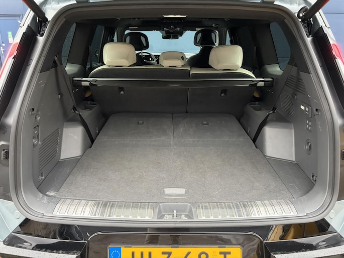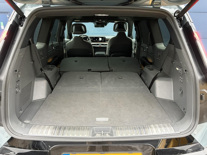 Aan de achterzijde wordt de aandacht getrokken door kenmerkende LED-achterlichten en een strakke achterklep met een verborgen ruitenwisser. De bagageruimte biedt 313 liter in standaardconfiguratie met 7 zitplaatsen, 828 liter met de derde rij neergeklapt en een indrukwekkende 2300 liter met alle stoelen plat. De EV9 beschikt ook over een frunk van 50 liter voor de achterwielaangedreven versie en 90 liter voor de vierwielaangedreven variant. Eventueel handig voor het opbergen van je laadkabel.
