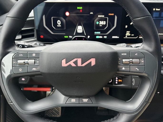 Het interieur van de EV9 straalt praktische luxe uit, met fysieke knoppen voor essentiële functies zoals stoelverwarming en stuurverwarming. Het infotainmentsysteem wordt bediend via touch-knoppen in het chique interieur. Het ruime interieur bevat twee schermen van 12,3 inch en een 5,3 inch display.
