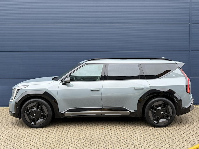 De indrukwekkende voorkant van de EV9 onthult het nieuwe gezicht van Kia. Hij heeft Z-vormige koplampen en de karakteristieke Tiger Nose van Kia is in zekere zin weer te herkennen. Hij staat 21 inch aerodynamisch geoptimaliseerde velgen. De EV9 dient als het nieuwe vlaggenschip van Kia en belichaamt de vooruitgang op het gebied van elektrificatie en technologie.