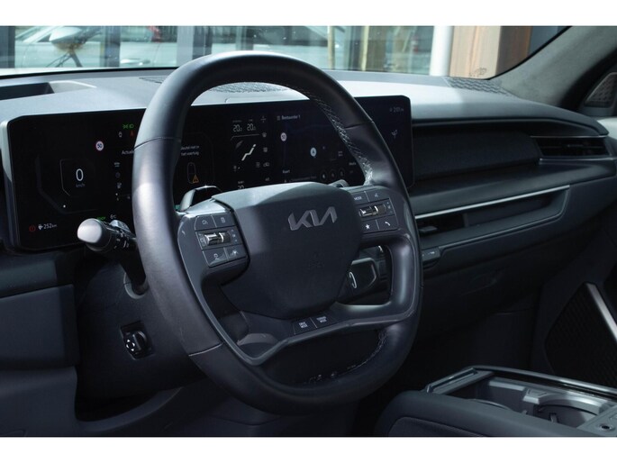 Het aërodynamische ontwerp is aantrekkelijk en functioneel. Dankzij de gunstige stroomlijn haalt u met deze Kia EV9 meer kilometers uit het accupakket. Power, stilte en nul procent uitlaatgas krijgt u met de elektromotor. Deze Kia EV9 komt in de luxe uitvoering, inclusief lederen interieur. Ga samen met uw bijrijder lekker zitten in de verwarmbare voorstoelen en laat jullie bloedsomloop stimuleren door de massagefunctie. Fun en functie wordt samengebracht in het elektrisch bedienbare glazen panoramadak. Met een druk op de knop gaat de elektrische achterklep open. Deze Kia EV9 heeft eigenlijk alles, zelfs een verwarmde achterbank. Met matrix LED-verlichting rijdt u eigenlijk altijd met groot licht, dus maximaal zicht. Toch is verblinden er niet bij, want het systeem regelt de verlichting zo dat tegenliggers er geen last van hebben. Tot de uitrusting van deze Kia behoren ook 21 inch lichtmetalen velgen, warmtewerend glas, trailer assistent, in delen neerklapbare achterbank, LED-achterlichten en verstelbare lendensteunen.