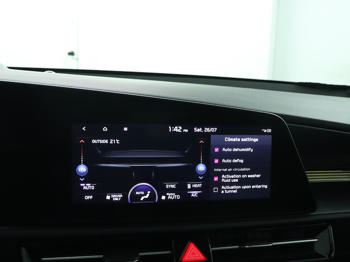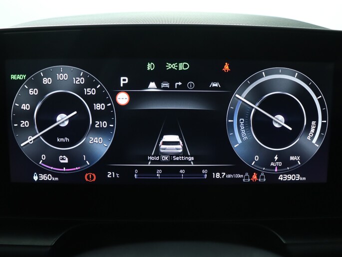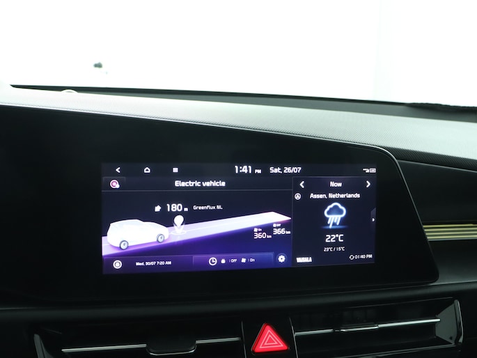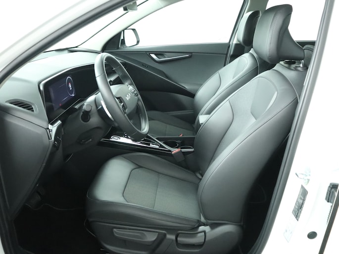 Geavanceerde systemen kunnen tijdens de rit bepaalde taken van u overnemen. Zo kijken er als het ware steeds extra ogen met u mee, zodat u tijdig kunt reageren op noodsituaties. De camera van de verkeersborddetectie herkent verschillende soorten verkeersborden en toont deze op het dashboard. Deze Kia Niro EV is ook behulpzaam als het gaat om een rechte koers. Het Lane-keeping systeem signaleert en corrigeert als u onbedoeld de rijstrooklijnen dreigt te overschrijden. Mindert een voorligger onverwachts te veel vaart, dan komt de forward collision warning in actie en waarschuwt meteen. Met voorzieningen als hill hold functie, vermoeidheidsherkenning, autonoom remsysteem en bandenspanningcontrolesysteem, bent u altijd veilig onderweg.