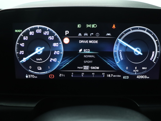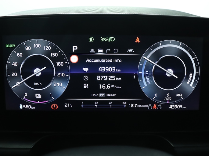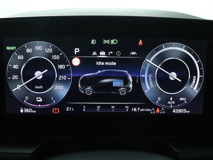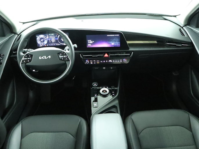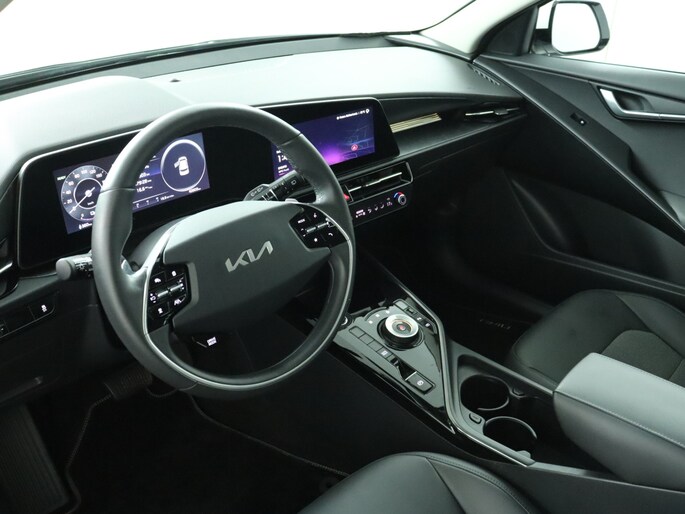 Voor het overzicht tijdens iedere rit is deze Kia Niro EV voorzien van een gemakkelijk afleesbaar digitaal dashboard. Een handige optie is de achteruitrijcamera. Achteruitrijden, inparkeren en manoeuvreren gaat gemakkelijker dan ooit. Als u de adaptive cruise control inschakelt, regelt de auto zelf de snelheid en de afstand tot de auto voor u. Rijden-stilstaan, rijden-stilstaan. Niks is irritanter en vermoeiender dan filerijden. Daar heeft deze Kia Niro EV een oplossing voor: de file assistent, die met radarmeting permanent het tempo aanpast op de voorligger. Zelfs als die stopt. Uw smartphone wordt een dashboard, met alle functies in beeld. Dankzij Connected Services en de speciale app. U bent in deze Kia ook voorzien van dashboard met spraakbediening, full map navigatiesysteem, kruisend verkeer detectie, automatische airconditioning, sportstuur met schakelpaddels en DAB ontvangst.