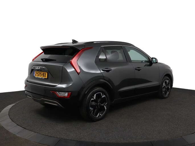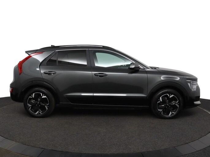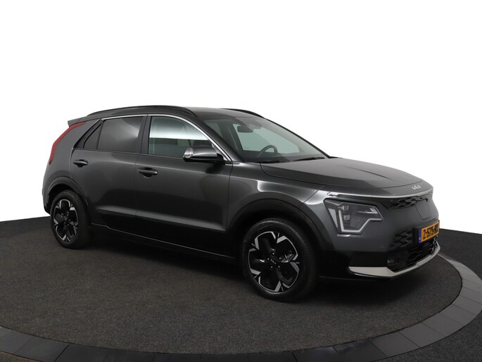 Schoonheid van buiten, schone techniek van binnen. Deze Kia Niro EV maakt elektrisch rijden aantrekkelijker dan ooit. De batterijtechniek heeft de afgelopen jaren enorme vooruitgang geboekt, zodat u met deze auto op een volle acculading echt ver kunt komen. En als u de auto 's avonds aan de lader koppelt, is hij de volgende dag weer helemaal vol. Een krachtige motor geeft deze auto zijn sportieve prestaties. Lekker hoor, die verwarmbare voorstoelen. Helemaal op koude dagen. De bagageruimte is toegankelijk via een comfortverhogende elektrische achterklep. De uitmonstering van deze auto wordt gecompleteerd door onder meer schuif- en kanteldak, 17 inch lichtmetalen velgen, LED koplampen, donker getint glas achter, in delen neerklapbare achterbank en LED-achterlichten.