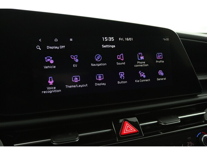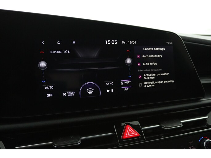 U geniet nog meer van het rijden met uw Kia omdat u wordt beschermd door intelligente veiligheidssystemen. Een belangrijke bijdrage aan de veiligheid onderweg levert de verkeersbord-detectie. Mooi binnen de lijnen van de rijstrook blijven? Het Lane-keeping systeem helpt altijd een handje. Ook als uw aandacht even verslapt, blijft de forward collision warning bij de wekker. Dreigt er een botsing met een voor- of tegenligger, dan waarschuwt het systeem direct. Ook helpen het hill hold functie, vermoeidheidsherkenning, autonoom remsysteem en bandenspanningcontrolesysteem, uw rit tot een veilige rit te maken.