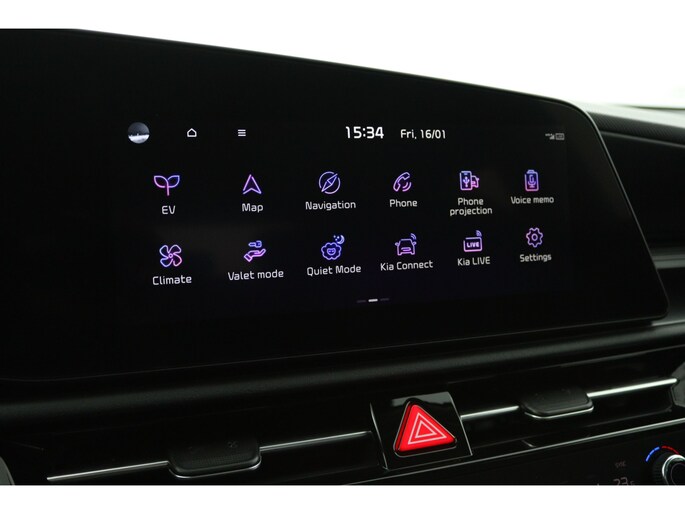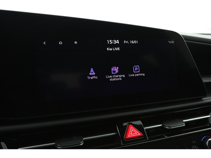 Dankzij het digitale dashboard leest u alle benodigde info gemakkelijk en overzichtelijk af. De hoogwaardige achteruitrijcamera en het display met hoge resolutie zorgen dat helemaal niets u meer ontgaat van wat er achter de auto gebeurt. Met adaptive cruise control houdt deze auto automatisch afstand tot uw voorligger. Na een lange werkdag in de file: daar zit niemand op te wachten. Gelukkig helpt de file assistent een handje. Het radarsysteem meet de ruimte tot de voorligger en bewaakt de juiste afstand. Stilstaan? Dan remt en stopt de auto vanzelf. Spraaksturing betekent dat u verschillende functies met uw stem kunt bedienen. Ook is de Kia uitgerust met: connected drive services, full map navigatiesysteem, automatische airconditioning, schakelpaddles aan het stuur, DAB ontvangst en keyless entry.