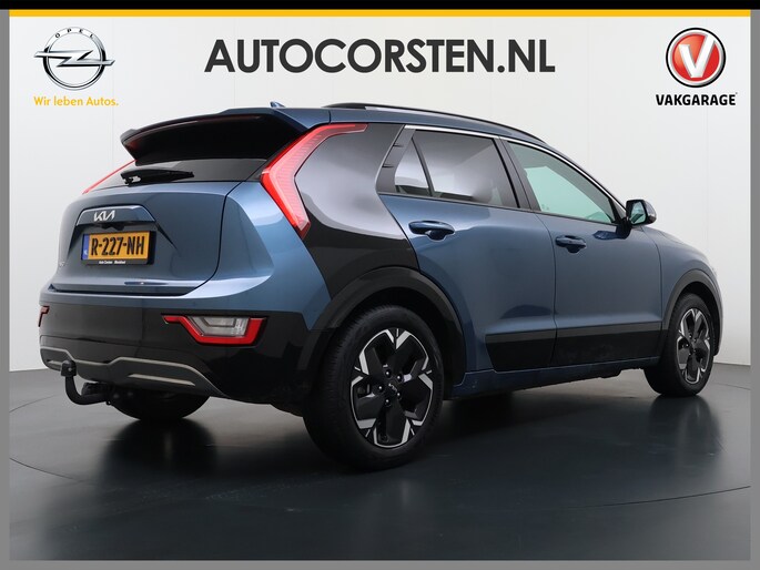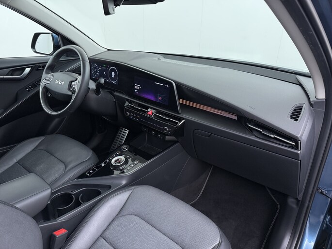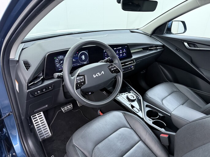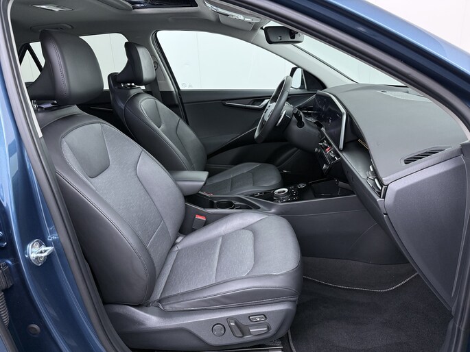 Movement that inspires, is de kreet bij Kia. Zo veel inspiratie dat het merk in de top 3 van favoriete merken staat. Dankzij de geavanceerde batterijtechnologie hebt u met deze auto een rijbereik dat ruim voldoende is voor de meeste dagelijkse ritten. En u zult zien, de tijd die nodig is om de batterij op te laden, valt enorm mee. Een krachtige motor geeft deze auto zijn sportieve prestaties. De leren bekleding is niet alleen mooi om te zien, maar zorgt ook voor comfort en een rijke uitstraling. Zit u goed? De stoelen zijn eenvoudig instelbaar dankzij de elektrische bediening met geheugen. Voorzien van zowel stoelverwarming, verwarmbare achterbank alsook een verwarmbaar stuur, zorgt dit voertuig voor uitstekend comfort tijdens koude dagen. De elektrisch bedienbare achterklep opent met een druk op de knop. Het glazen panoramadak biedt u een breed zicht op de omgeving. Verder is de Kia uitgerust met: 17 inch lichtmetalen velgen, LED koplampen, donker getint glas achter, in delen neerklapbare achterbank, LED-achterlichten en verstelbare lendensteunen.