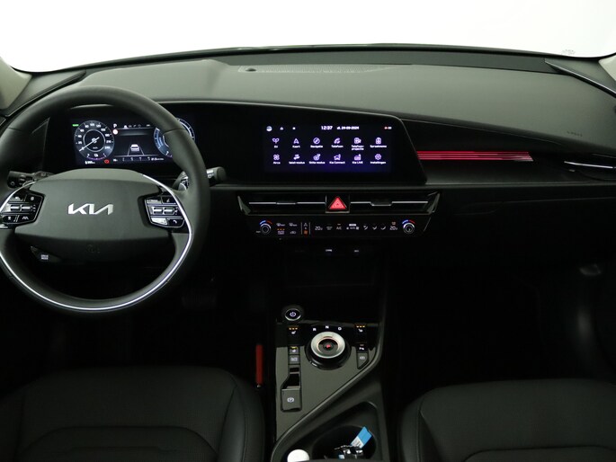 Met het digitale dashboard kan je de cockpit-interface naar jouw voorkeur instellen. Wat een gemak, die achteruitrijcamera. Alles in beeld zonder capriolen. Met adaptive cruise control houdt de auto zelfstandig afstand tot jouw voorligger. Een veiligheidsverhogende optie waarmee je comfortabel onderweg bent. De ingebouwde file assistent is een echte helper als het vaststaat onderweg. Het systeem meet ruimte tot de auto vóór u permanent en activeert zelfs de remmen als je voorligger stopt. Hoe is het met de banden, de accu en andere onderdelen? Connected Services maakt het inzichtelijk, 24/7 via de app. De Kia is standaard voorzien van: dashboard met spraakbediening, full map navigatiesysteem, kruisend verkeer detectie, automatische airconditioning, DAB ontvangst en regensensor.