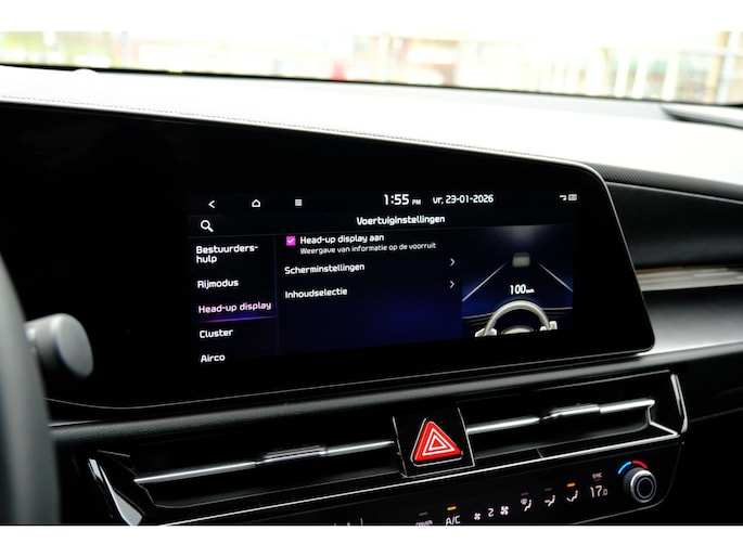 Deze auto is voorzien van innovatieve systemen die u onderweg begeleiden en beschermen. Snelheid en andere benodigde info hoeft u niet meer te bekijken op het dashboard. De head-up display projecteert de gegevens in de voorruit. Dat de auto steeds meer taken van de bestuurder overneemt, merkt u bijvoorbeeld aan het systeem voor verkeersbord-detectie in deze Kia. Het Lane-keeping systeem doet precies wat nodig is: waarschuwen en corrigeren bij onbedoelde overschrijding van de rijstrooklijnen. U bent mede dankzij dodehoekdetector detectiesysteem, accident avoidance system, forward collision warning system, hill hold functie, vermoeidheidsherkenning en bandenspanningcontrolesysteem steeds veilig onderweg.