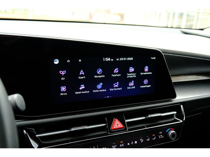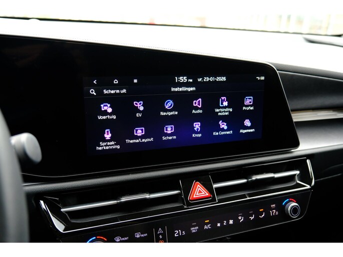 U leest alle belangrijke functies helder af dankzij het digitale dashboard. Een vergeten muurtje, een verborgen paaltje? Dat gebeurt niet meer, dankzij de achteruitrijcamera. Adaptive cruise control houdt de ingestelde snelheid vast en houdt afstand tot het voertuig voor u. De speciale app verbindt met Connected Services, die de status van vitale functies bijhoudt en waarschuwt als u bijvoorbeeld moet tanken, de bandenspanning moet controleren of olie moet bijvullen. U kunt het audiosysteem met DAB-ontvangst en het navigatiesysteem bedienen met de knoppen op het stuur of zelf met uw stem. U bent in deze Kia ook voorzien van automatische airconditioning, regensensor, keyless entry en automatisch dimmende binnenspiegel.