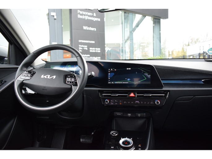 Jonge, ruime en complete Kia Niro EV DynamicLine 64,8kWh o.a. voorzien van ECC-Airco, Adaptieve Cruise control, 10.25" Navigatie, Achteruitrijcamera, Bluetooth, DAB+, Leder/stof, Armsteun Voor + Achter, Lane Keep Assist, Smart Key met start/stop-button, LED verlichting, 17" LMV, Parkeersensoren, en Tot 10Jr. Kia-Garantie t/m 23-06-2033! Verkoopprijs € 28880,- incl. Basis Service-pakket. Rijklaarprijs € 29475,- incl. FullService-afleverpakket van € 595,-.