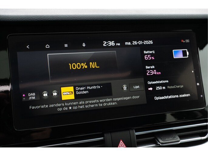 In de Kia e-Niro heeft uw veiligheid en die van uw omgeving prioriteit. Een camera houdt de juiste koers binnen de rijstrook in de gaten en het Lane-keeping systeem corrigeert bij afwijkingen. Op een kop-staartbotsing zit niemand te wachten. Daarom is de forward collision warning onderweg constant alert en berekent via een sensor de veilige afstand tot voorliggers. De veiligheidssystemen in deze auto nemen het zelfs waar als de bestuurder tekenen van vermoeidheid vertoont, en waarschuwen dan met een duidelijk signaal. Met voorzieningen als hill hold functie, autonoom remsysteem en bandenspanningcontrolesysteem, bent u altijd veilig onderweg.