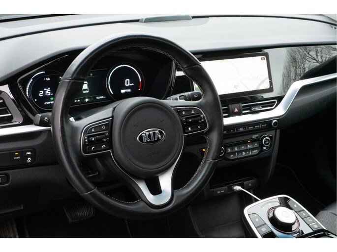Schoon rijden hoeft niet saai te zijn. Ervaar het plezier van elektrisch rijden met de Kia e-Niro. Met de elektromotor zoeft u fluisterzacht over de weg. Een krachtige motor geeft deze auto zijn sportieve prestaties. Deze Kia e-Niro legt bestuurder én bijrijder compleet in de watten met de verwarmbare voorstoelen. Het elektrisch bediende glazenpanorama dak zorgt voor licht en gevoel van ruime. Ook 17 inch lichtmetalen velgen, LED koplampen, donker getint glas achter, in delen neerklapbare achterbank en LED-achterlichten horen tot de voorzieningen op deze auto.