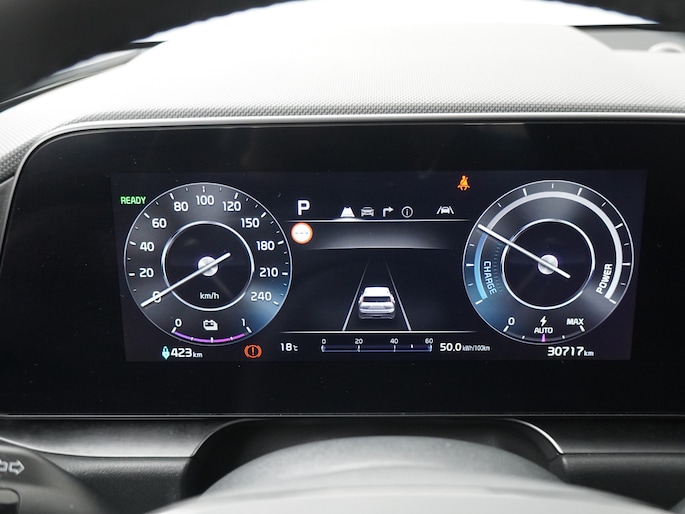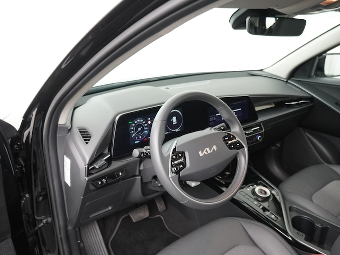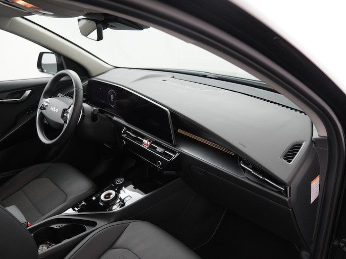 Het digitale dashboard in deze auto maakt personalisatie van uw cockpitinterface mogelijk. Altijd achter zicht, nooit meer nekkramp! De achteruitrijcamera maakt het supermakkelijk. Met adaptive cruise control houdt deze auto automatisch afstand tot uw voorligger. Rijden-stilstaan, rijden-stilstaan. Niks is irritanter en vermoeiender dan filerijden. Daar heeft deze Kia Niro EV een oplossing voor: de file assistent, die met radarmeting permanent het tempo aanpast op de voorligger. Zelfs als die stopt. De meest gebruikte voertuigfuncties laten zich met behulp van uw stem bedienen. Deze auto is voorzien van connected drive services, full map navigatiesysteem, kruisend verkeer detectie, automatische airconditioning, sportstuur met schakelpaddels en DAB ontvangst.