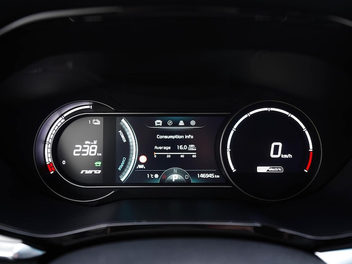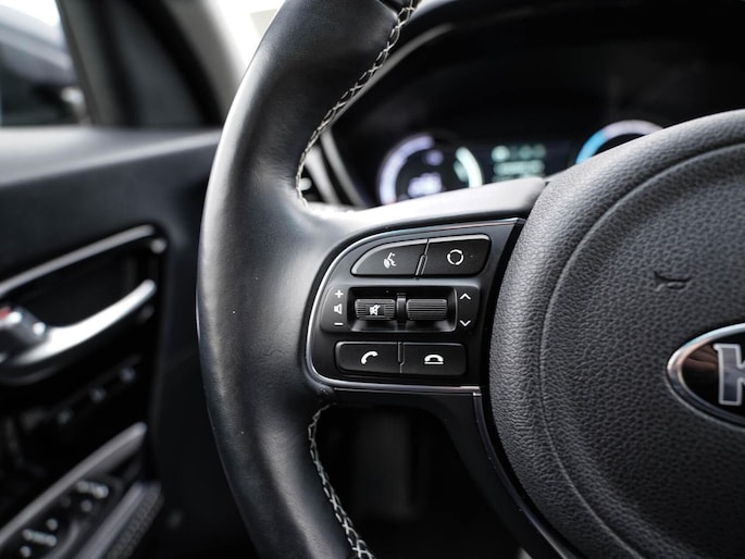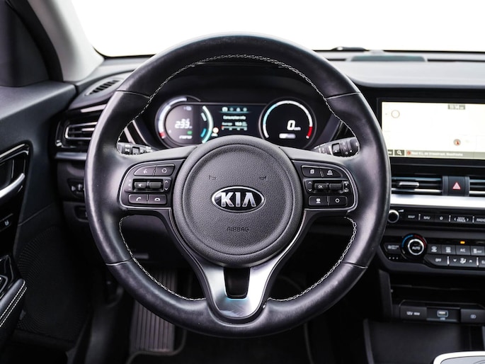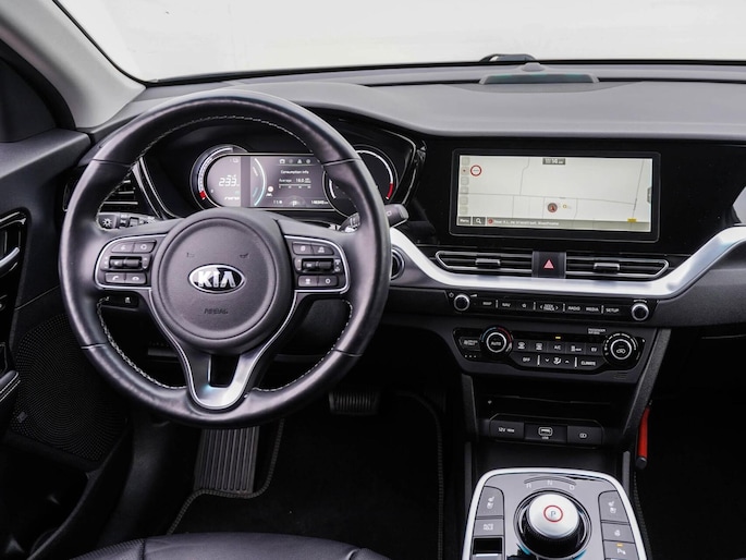 Kia rijden is kiezen voor design, gunstige prijsstelling en veel keuze in modellen. Niet voor niets al jaren in de top-3 van populaire merken. Movement that inspires! Ervaar de kracht en stilte van de elektromotor tijdens het rijden. Het met leer beklede interieur geeft deze auto een gedistingeerde uitstraling. Deze Kia e-Niro heeft verwarmbare voorstoelen, voor zowel bestuurder als bijrijder. Een heerlijk zonnetje, of indrukwekkende wolkenpartijen? Bekijk ze onbelemmerd door het elektrisch bediende glazen panoramadak. Ook achterin heerst een luxe sfeer, vanwege de verwarmde achterbank. Tot de uitrusting van deze Kia behoren ook 17 inch lichtmetalen velgen, LED koplampen, donker getint glas achter, in delen neerklapbare achterbank, LED-achterlichten en verstelbare lendensteunen.