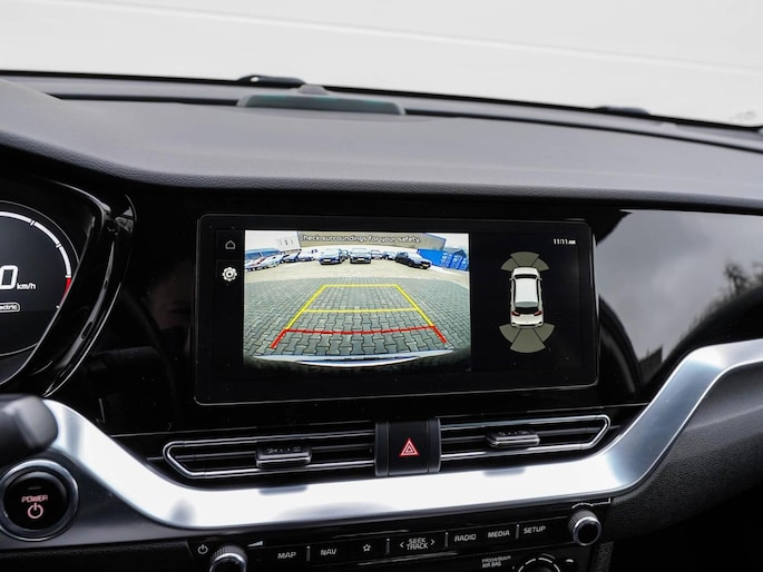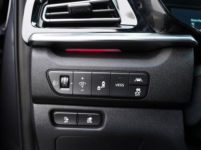 Zoals je mag verwachten van deze Kia e-Niro is hij uitgerust met een reeks aan actieve veiligheidssystemen. Deze Kia e-Niro is ook behulpzaam als het gaat om een rechte koers. Het Lane-keeping systeem signaleert en corrigeert als je onbedoeld de rijstrooklijnen dreigt te overschrijden. Veel aanrijdingen bestaan uit kop-staartbotsingen. De forward collision warning reduceert dat risico aanzienlijk. Een belangrijk veiligheidssysteem in deze auto is de vermoeidheidsherkenning, die je een duidelijk signaal geeft wanneer je achter het stuur in slaap dreigt te vallen. Dankzij veiligheidsvoorzieningen als dodehoekdetectie, hill hold functie, autonoom remsysteem en bandenspanningcontrolesysteem, ben je steeds veilig onderweg.