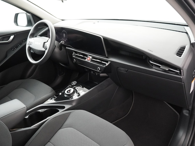 Alle ritinformatie en communicatie is gebundeld in één overzichtelijk digitale dashboard. Parkeer en kijk niet om! De achteruitrijcamera doet dat voor u. Adaptive cruise control houdt de ingestelde snelheid vast en houdt automatisch afstand tot uw voorligger. Rijden-stilstaan, rijden-stilstaan. Niks is irritanter en vermoeiender dan filerijden. Daar heeft deze Kia Niro EV een oplossing voor: de file assistent, die met radarmeting permanent het tempo aanpast op de voorligger. Zelfs als die stopt. Connected Services voegt nog meer comfort en veiligheid toe aan deze auto. De Kia is standaard voorzien van: dashboard met spraakbediening, full map navigatiesysteem, kruisend verkeer detectie, automatische airconditioning, sportstuur met schakelpaddels en DAB ontvangst.