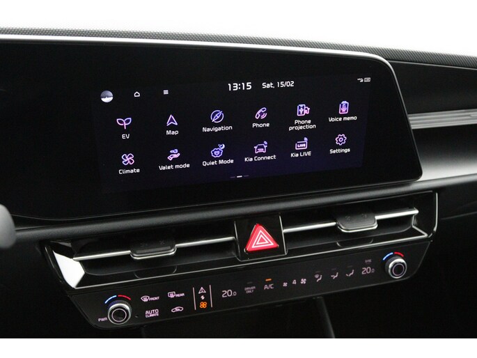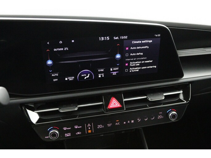 Praktisch, helder en uitermate handig is het digitale dashboard. Alle functies haarscherp in beeld! Nekkramp en verdraaide schouders zijn verleden tijd. Door de achteruitrijcamera is iedere meter achter de auto glashelder in beeld. Adaptive cruise control is een comfortabele en veilige optie. Het systeem reguleert de snelheid en houdt automatisch afstand tot uw voorligger. De aanwezige file assistent meet de afstand tot uw voorligger en zorgt voor een veilige afstand. Staat het voor u opeens stil? Dan zorgt het systeem dat de auto ook stopt. Slimme spraakbesturing herkent gesproken opdrachten en voert ze uit. De Kia is standaard voorzien van: connected drive services, full map navigatiesysteem, kruisend verkeer detectie, automatische airconditioning, sportstuur met schakelpaddels en DAB ontvangst.