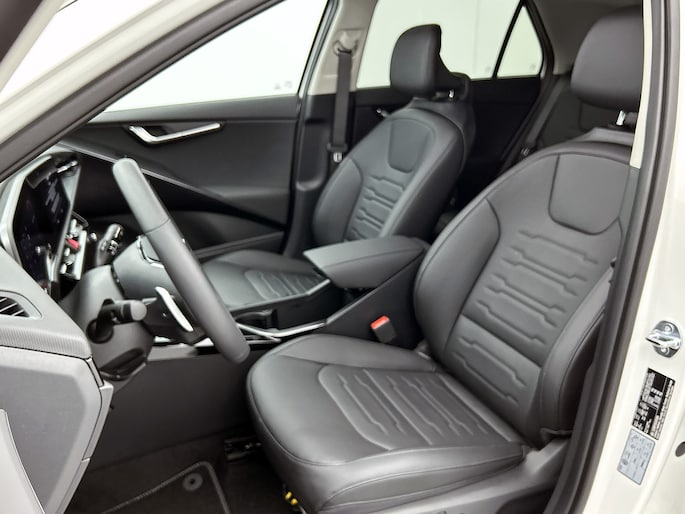 De nieuwste veiligheidssystemen komen in deze Kia Niro EV samen. Snelheid en andere benodigde info hoef je niet meer te bekijken op het dashboard. De head-up display projecteert de gegevens in de voorruit. Onbedoeld buiten de rijstrook raken wordt voorkomen door het Lane-keeping systeem. Hoe goed je ook oplet in het verkeer, de dode hoek blijft een risico. Gelukkig is deze Kia Niro EV voorzien van actieve dodehoekdetectie. Dankzij veiligheidsvoorzieningen als forward collision warning system, hill hold functie, vermoeidheidsherkenning, autonoom remsysteem en bandenspanningcontrolesysteem, ben je steeds veilig onderweg.