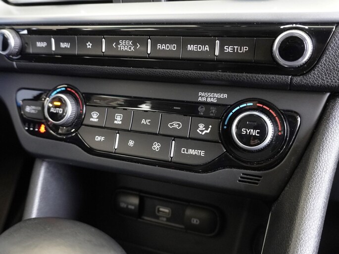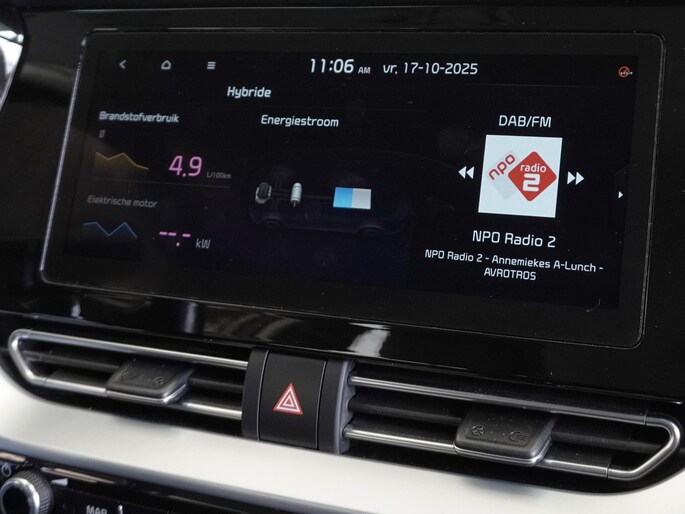 De digitale wereld van mobiliteit verwelkomt u; op het digitale dashboard wordt alles weergegeven om uw rit gemakkelijk en veilig te maken. Hoeveel ruimte heeft u nog bij het inparkeren? De achteruitrijcamera brengt helder in beeld wat zich achter de auto bevindt en geeft een geluidssignaal. Adaptive cruise control is veilig en comfortabel. De snelheidsregelaar houdt automatisch afstand tot het voertuig dat voor u rijdt. Met de knoppen op het stuur regelt u het audiosysteem en het full map navigatiesysteem, terwijl u uw blik op de weg gericht houdt. De audio-installatie biedt daarbij glasheldere ontvangst dankzij DAB-ontvangst. In een auto als deze kunt u niet zonder automatische airconditioning, zodat de temperatuur altijd goed is. U bent in deze Kia ook voorzien van schakelpaddles aan het stuur, regensensor, automatisch dimmende binnenspiegel, centrale deurvergrendeling met afstandsbediening, bagage afdekhoes en lederen versnellingspook.
