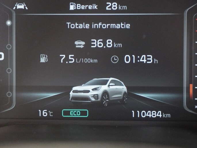 Hij is functioneel, flexibel en gebruiksvriendelijk, deze Kia Niro. U neemt er met gemak uw gezin in mee. Hij heeft een benzinemotor en een automatische transmissie. Bij de zeer complete uitrusting van deze auto behoren ook 16 inch lichtmetalen velgen, halflederen bekleding, LED-dagrijverlichting, in hoogte verstelbare passagiersstoel, in delen neerklapbare achterbank en LED-achterlichten.