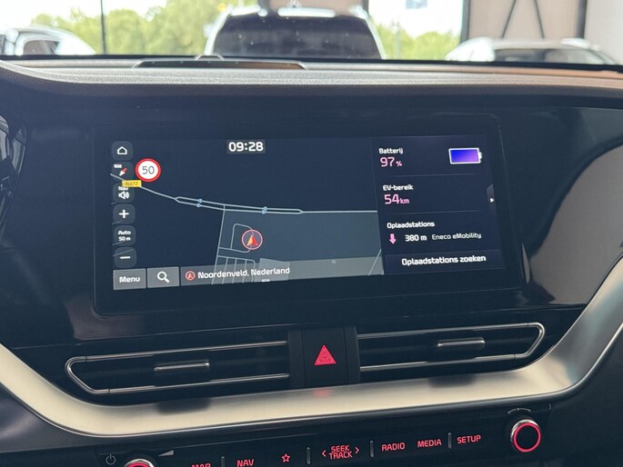 Comfortabel en veilig achteruitrijden gaat gemakkelijker dan ooit met behulp van de achteruitrijcamera. Adaptive cruise control houdt de ingestelde snelheid vast en houdt automatisch afstand tot uw voorligger. Een goede veiligheidsvoorziening is de stuurbediening voor belangrijke functies. De auto is natuurlijk voorzien van een full map navigatiesysteem en het audiosysteem biedt glasheldere geluidskwaliteit dankzij DAB-ontvangst. U wilt van richting veranderen, een tegenligger lijkt daarbij in uw voorgenomen baan te komen? Dan reageert de kruisend verkeer detectie direct om een aanrijding te vermijden. De auto is ook uitgevoerd met automatische airconditioning. U bent in deze Kia ook voorzien van schakelpaddles aan het stuur, regensensor, keyless entry, automatisch dimmende binnenspiegel, isofix-aansluiting en bagage afdekhoes.