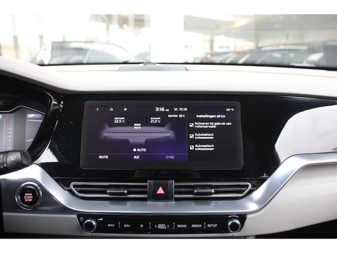 De achteruitrijcamera levert eersteklas parkeerservice. U weet precies hoeveel ruimte u nog heeft, in beeld en geluid. Als u de adaptive cruise control inschakelt, regelt de auto zelf de snelheid en de afstand tot de auto voor u. Topprestaties in muziek en geluid? Dat is bijgeleverd in de vorm van het high performance audiosysteem! Het navigatiesysteem loodst u snel naar uw reisdoel. Ook is de auto voorzien van automatische airconditioning. Ook is de Kia uitgerust met: draadloos opladen, DAB ontvangst, regensensor, keyless entry, automatisch dimmende binnenspiegel en bagage afdekhoes.