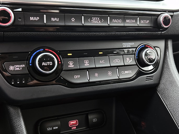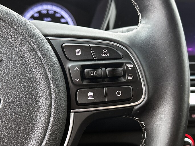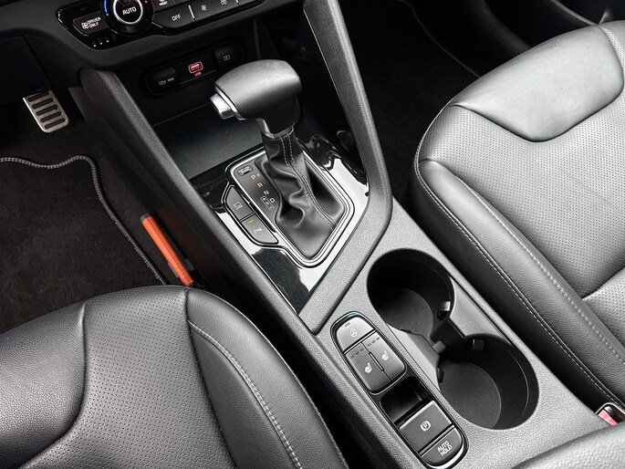 Nooit meer parkeerschade dankzij de achteruitrijcamera. Adaptive cruise control houdt de ingestelde snelheid vast en houdt automatisch afstand tot jouw voorligger. Een goede veiligheidsvoorziening is de stuurbediening voor belangrijke functies. De auto is natuurlijk voorzien van een full map navigatiesysteem en het audiosysteem biedt glasheldere geluidskwaliteit dankzij DAB-ontvangst. Automatische airconditioning regelt volautomatisch de temperatuur. Jij kiest de gewenste temperatuur en het systeem doet de rest. De automatisch inschakelbare verlichting en regensensor zorgen dat onderweg automatisch de verlichting en de ruitenwissers worden ingeschakeld. Daarmee nemen ze je veel werk uit handen. Ook is de Kia uitgerust met: schakelpaddles aan het stuur, keyless entry, automatisch dimmende binnenspiegel, bagage afdekhoes en lederen versnellingspook.