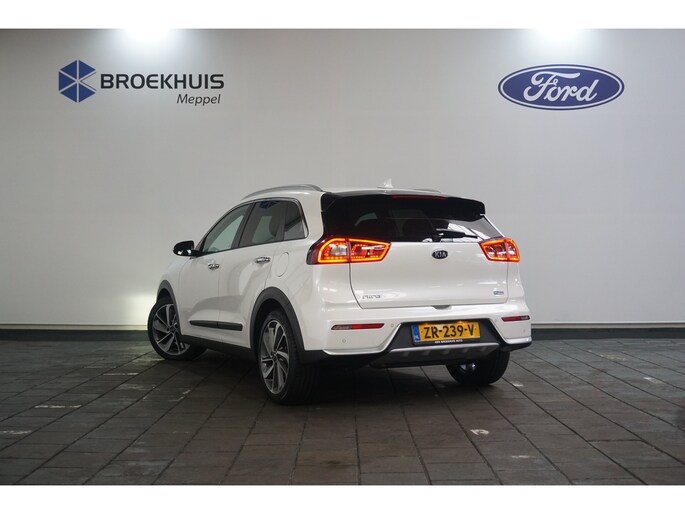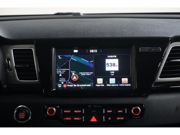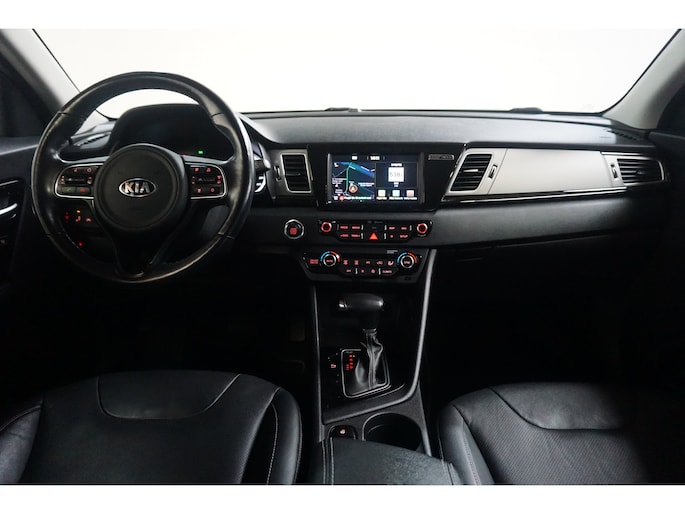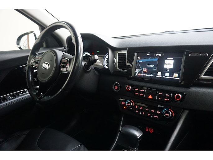 Als geen ander weten de Koreaanse automerken auto's te bouwen van een geweldige kwaliteit. Deze Kia Niro is voorzien van een hybride motor. Dat betekent dat de aandrijving wordt geleverd door zowel een brandstofmotor als een elektromotor, die slim samenwerken om zuinig over de weg te gaan. De auto is voorzien van leren bekleding - een fraaie en sfeerverhogende extra. Hoogstaande comfortfuncties zoals stoelverwarming, verwarmbare achterbank en een verwarmbaar stuur maken deze auto tot een uitzonderlijke keuze. Ook 18 inch lichtmetalen velgen, LED koplampen, extra getint glas, in delen neerklapbare achterbank en LED-achterlichten zijn aan boord. Bij het inparkeren laat de achteruitrijcamera precies zien hoeveel meter... decimeter... centimeter ruimte er nog is! Als u de adaptive cruise control inschakelt, regelt de auto zelf de snelheid en de afstand tot de auto voor u. Topprestaties in muziek en geluid? Dat is bijgeleverd in de vorm van het high performance audiosysteem! Door de draadloze oplaadmogelijkheid voor telefoons bent u verlost van kabels en snoertjes. Het opladen gaat simpel door de smartphone in de speciale houder te plaatsen. Met electronic climate control hoeft u alleen de gewenste temperatuur in te stellen. Het systeem doet de rest. Ook full map navigatiesysteem, DAB ontvangst, regensensor, keyless entry en automatisch dimmende binnenspiegel horen tot de voorzieningen op deze auto. Zoals u mag verwachten van deze Kia Niro is hij uitgerust met een reeks aan actieve veiligheidssystemen. Indien u onbedoeld de rijstrook lijkt te verlaten, reageert het Lane-keeping systeem meteen en corrigeert. Een kortere remweg verkleint de kans op een aanrijding. Brake assist helpt actief mee tijdens een noodstop. Met voorzieningen als dodehoekdetectie, hill hold functie en bandenspanningcontrolesysteem, bent u altijd veilig onderweg. Laat het ons meteen weten als u interesse heeft in deze auto, dan kunnen we een afspraak maken om u de auto te demonstreren.