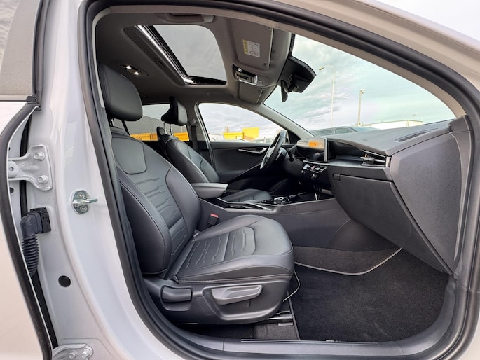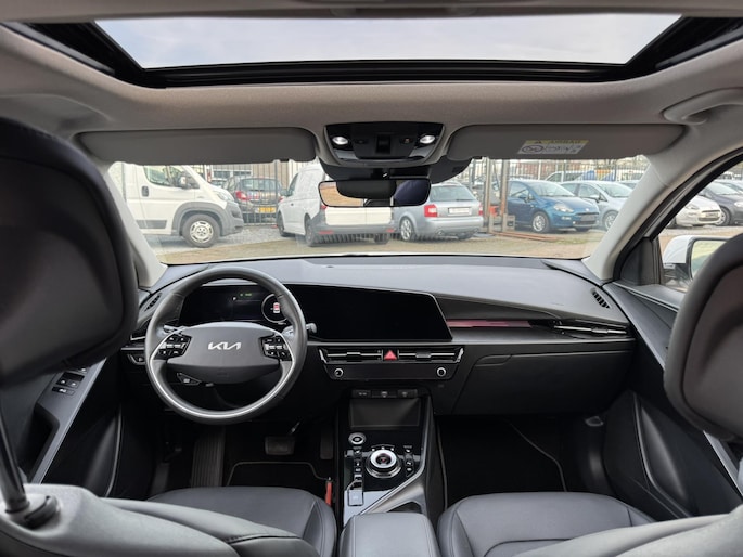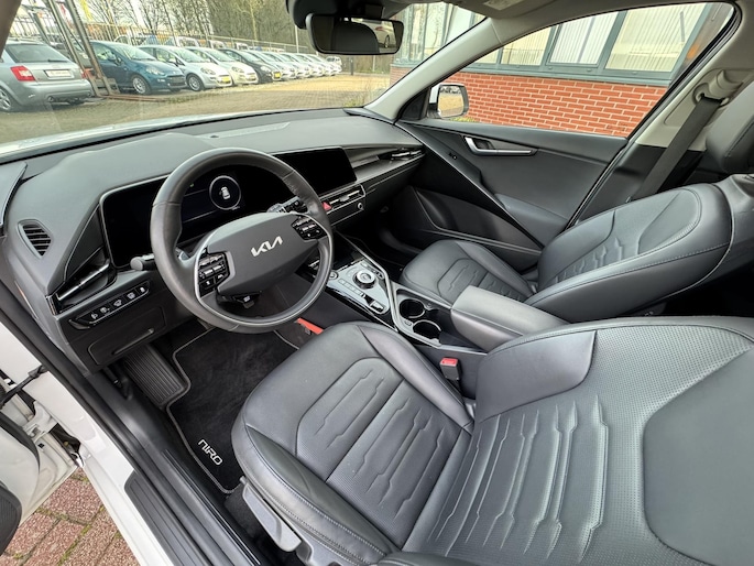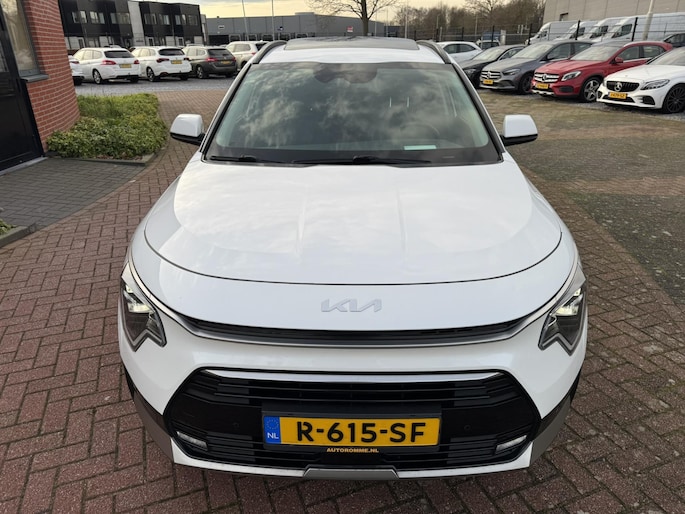 Keurig nette en bomvolle Kia Niro, onder andere voorzien van FULL-LED-verlichting, panorama-/schuifkanteldak, volledig lederen interieur, head up display, stoelverwarming, stuurverwarming, ambientverlichting, lane assist, etc.