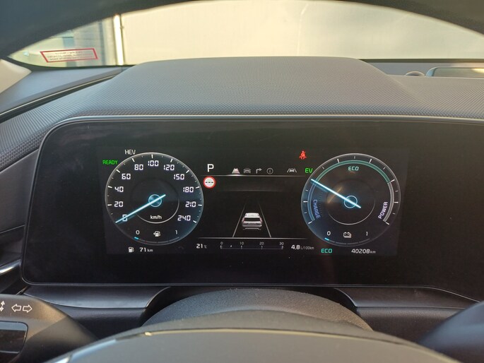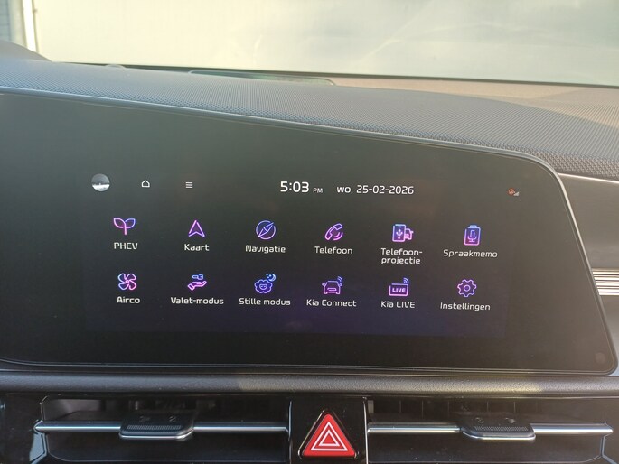 Het zal u verbazen hoe deze auto in staat is om voor u de omgeving en het verkeer om u heen in de gaten te houden. Altijd uw blik op de weg: met de head-up display hoeft u geen moment uw ogen te verplaatsen. De info wordt geprojecteerd in het zichtveld voor u. In het instrumentarium laat de verkeersborddetectie de actuele verkeersborden zien. Voorzien van het Lane-keeping systeem. Ofwel: blijf automatisch in je baan. Bovenop deze veiligheidsfeatures heeft deze Kia bovendien dodehoekdetector detectiesysteem, forward collision warning system, hill hold functie, vermoeidheidsherkenning, autonoom remsysteem en bandenspanningcontrolesysteem.