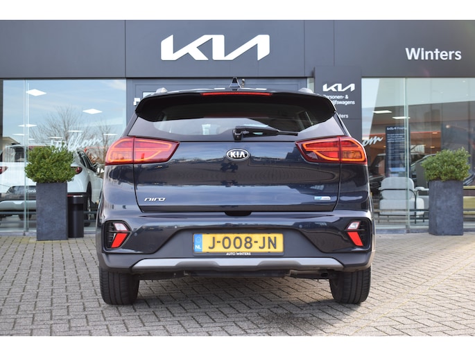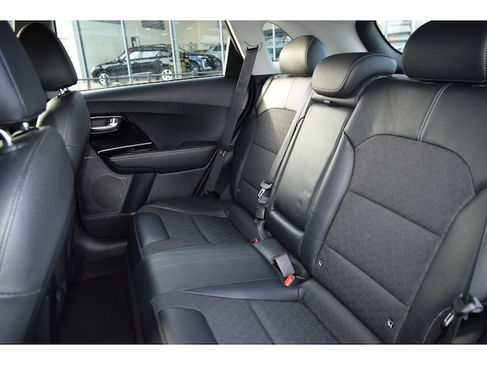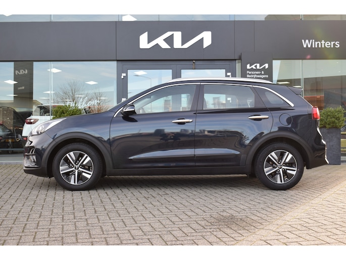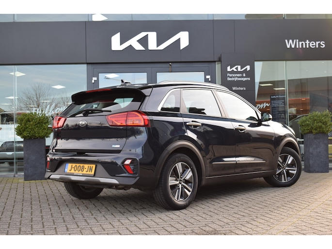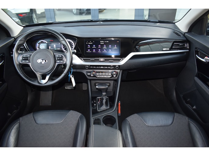 Kia Niro 1.6 GDi Hybrid DynamicLine met o.a. navigatiesysteem, achteruitrijcamera, climate control, adaptieve cruise control, rijstrookassistent, lichtmetalen velgen, keyless entry & start en parkeersensoren. Een complete en zuinige hybride met veel comfort en veiligheid.