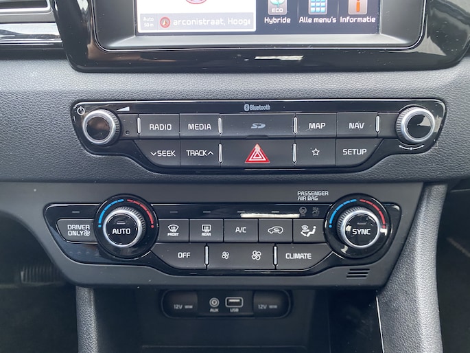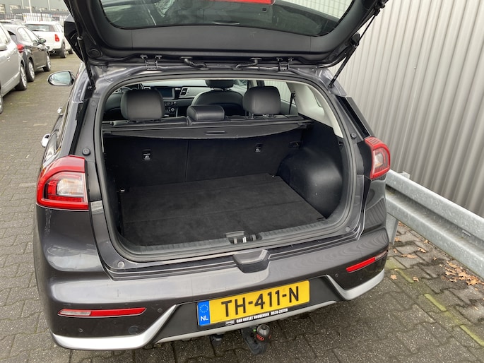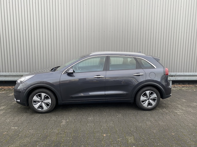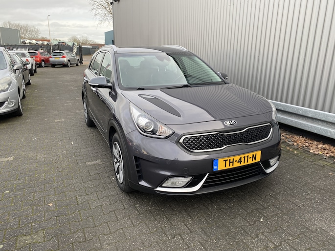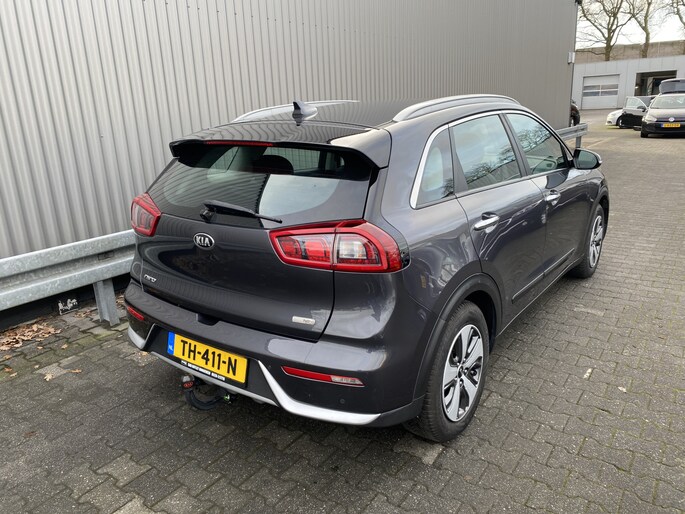 WIJ ZIJN ALLEEN OPEN OP TELEFONISCHE AFSPRAAK. Nette en goed rijdende Kia Niro 1.6 GDi Hybrid DynamicLine AUTOMAAT, slechts 100Dkm. NAP op de klok en met o.a. Automatische Klimaatregeling, Half Leder/Stof interieur, Navigatiesysteem, Bluetooth (Carkit), Cruise Control, Park Distance Control, Achteruitrijcamera, Origineel Licht Metaal, Afneembare Trekhaak en nieuwe APK. Inruil is uiteraard bespreekbaar.