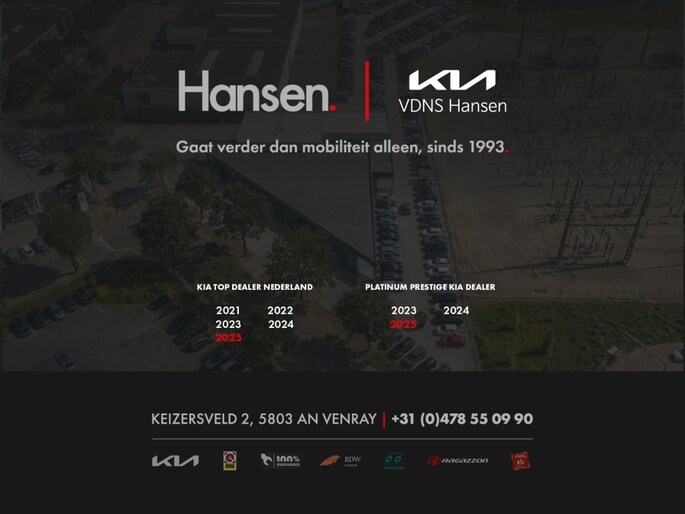 Hansen is sinds 1993 dé occasion en Kia-dealer voor regio Venray en omstreken. Je bent bij ons aan het juiste adres voor de aanschaf van een jong gebruikte auto of nieuwe Kia. Daarnaast kun je bij ons terecht voor reparatie- of onderhoudswerkzaamheden aan jouw auto. Onze professionele werkplaats is ingericht voor elk type auto. Met ervaring sinds 1993 is jouw auto bij ons in goede handen. Onze vakmensen staan voor je klaar, evenals een vers kopje koffie of thee!