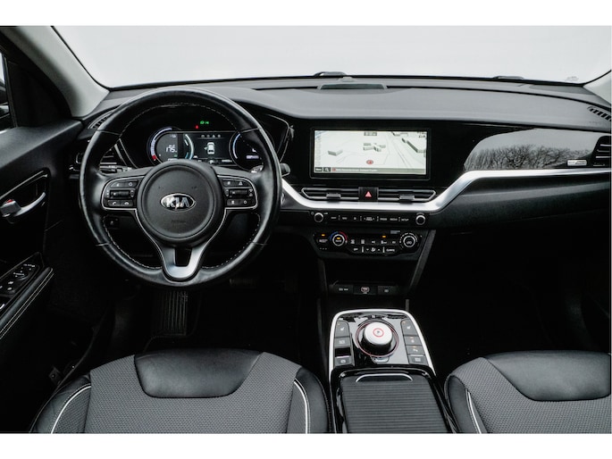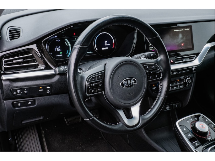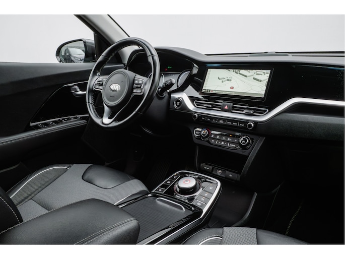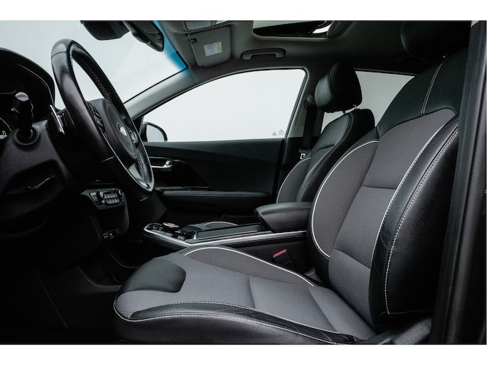 Innovatieve toptechniek en een uitgesproken karakter. De Kia e-Niro is een onderscheidende auto met een elektrische aandrijflijn. U wordt actief onderdeel van de energietransitie met de elektromotor. Een krachtige motor geeft deze auto zijn sportieve prestaties. Een beetje luxe is nooit weg, toch? Vandaar de stoelverwarming! Van binnen lijkt het allemaal uitermate ruim dankzij de vrije inval van daglicht via het elektrisch bediende glazen panoramadak. Bij de rijke uitrusting horen ook 17 inch lichtmetalen velgen, LED koplampen, donker getint glas achter, in delen neerklapbare achterbank en LED-achterlichten.
