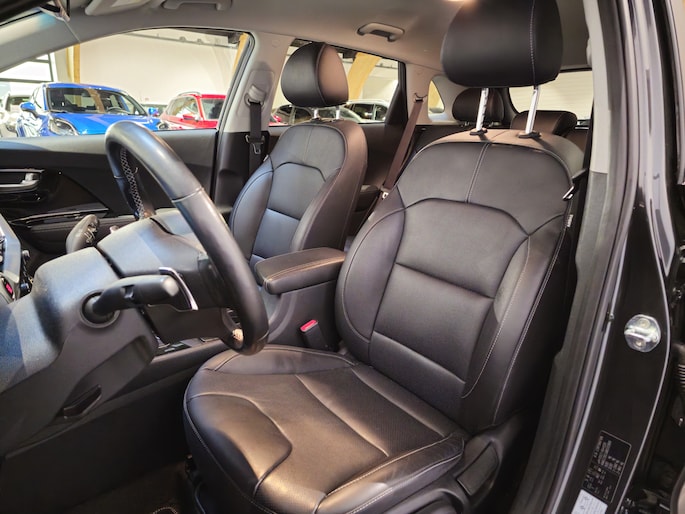 In de Kia Niro heeft uw veiligheid en die van uw omgeving prioriteit. Dat de auto steeds meer taken van de bestuurder overneemt, merkt u bijvoorbeeld aan het systeem voor verkeersbord-detectie in deze Kia. Een camera houdt de juiste koers binnen de rijstrook in de gaten en het Lane-keeping systeem corrigeert bij afwijkingen. De veiligheid van deze auto wordt verder verhoogd door dodehoekdetectie, hill hold functie, autonoom remsysteem en bandenspanningcontrolesysteem.