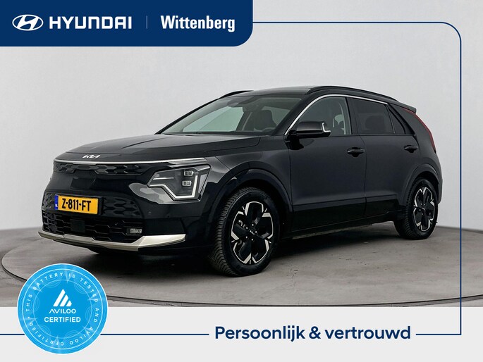Een nieuw tijdperk breekt aan. Emissievrij rijden is niet langer toekomstmuziek met deze elektrische Kia Niro EV. Met de elektromotor zoef je fluisterzacht over de weg. Hoe koud het buiten ook is, het verwarmbare stuurwiel en de verwarmbare voorstoelen brengen jouw handen, vingers en lichaam snel weer op temperatuur. De elektrische achterklep opent met een druk op de knop, zodat jij gemakkelijk toegang heeft tot de bagageruimte. Tot de voorzieningen van deze auto behoren schuif- en kanteldak, 17 inch lichtmetalen velgen, LED koplampen, extra getint glas, in delen neerklapbare achterbank en LED-achterlichten.