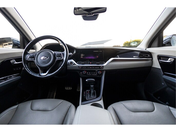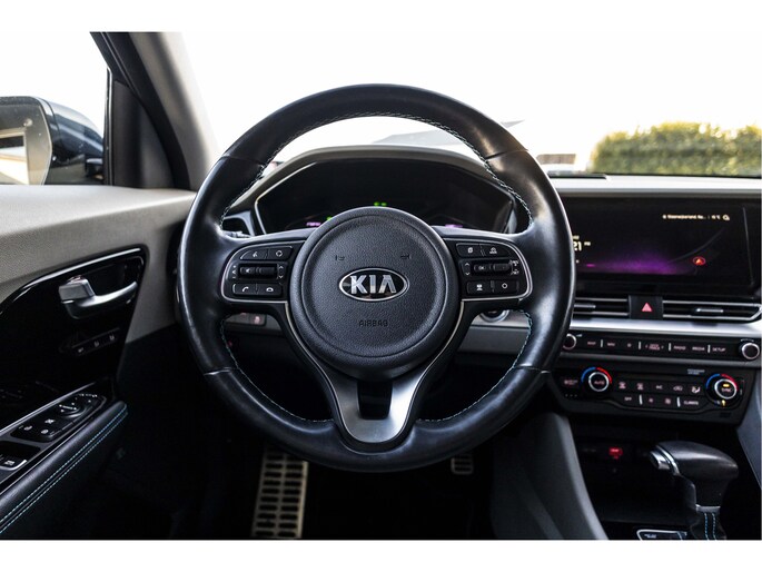 Behalve een markant design biedt de Kia Niro ook uitstekende rijkwaliteiten en zeer veel ruimte. Deze Niro is uit 2020 en heeft 68461 kilometer gelopen. Voor de aandrijving van deze SUV zorgen een viercilinder benzinemotor en een automatische transmissie. Iedereen kan het beamen: een lederen interieur is levend en luxe. Om van comfort nog maar te zwijgen. En dat komt allemaal nog beter tot z'n recht dankzij het elektrisch bediende glazen panorama dak. Neem plaats op de comfortabele stoelen. Dankzij de elektrische bediening en het geheugen is het eenvoudig om hierin de beste zitpositie te vinden. In dit voertuig hoeft u nooit meer kou te lijden dankzij functies als stoelverwarming en verwarmbare achterbank, evenals een verwarmbaar stuur. Bij de rijke uitrusting horen ook 18 inch lichtmetalen velgen, LED koplampen, donker getint glas achter, in delen neerklapbare achterbank en LED-achterlichten.