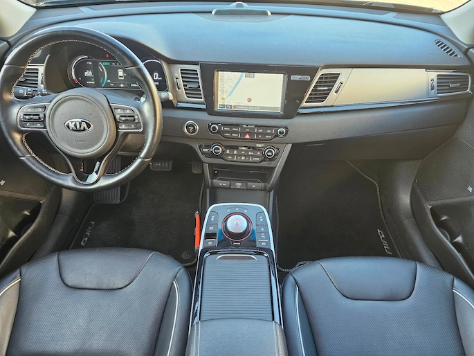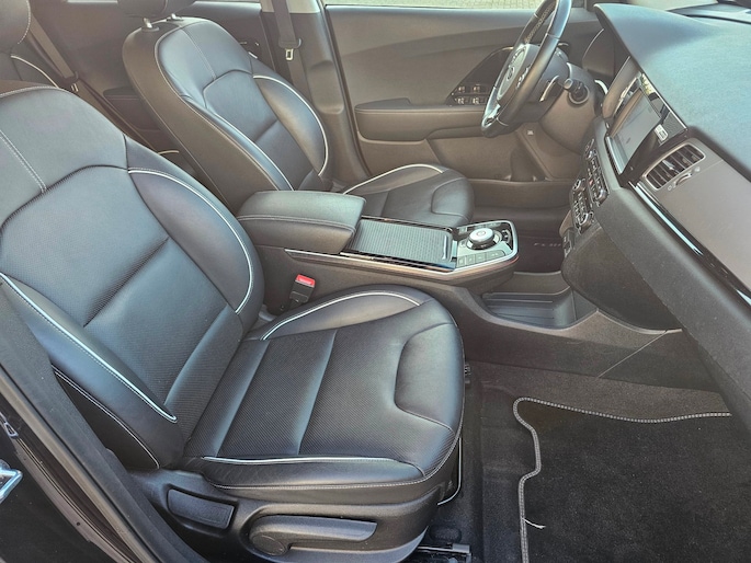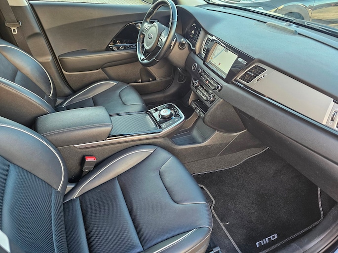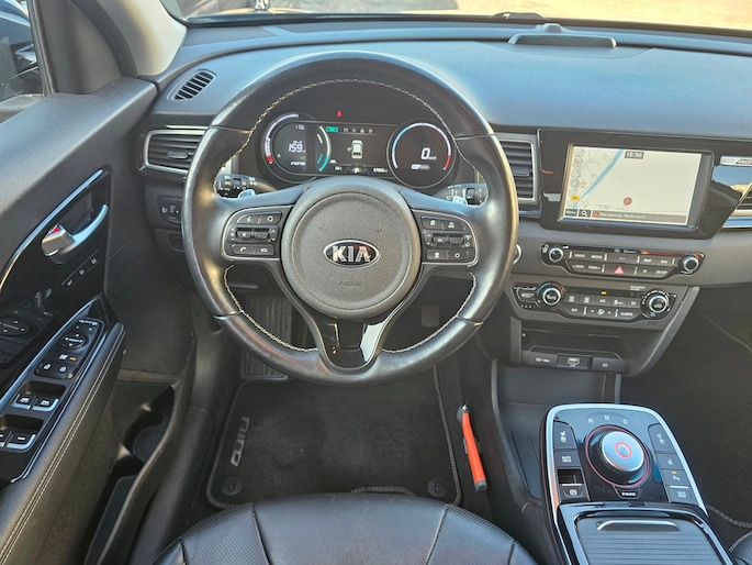 Het zijn de harmonieuze vormgeving en de hoogstaande technologie die de Kia E-Niro zo begerenswaardig maken. Een krachtige motor geeft deze auto zijn sportieve prestaties. Maximaal comfort en stijl krijgt u dankzij het lederen interieur. U zult absoluut de luxe waarderen van de stoelverwarming, verwarmbare achterbank, en het verwarmbare stuur dat inbegrepen is in dit voertuig. De uitmonstering van deze auto wordt gecompleteerd door onder meer 17 inch lichtmetalen velgen, LED koplampen, extra getint glas, LED-achterlichten en verstelbare lendensteunen.