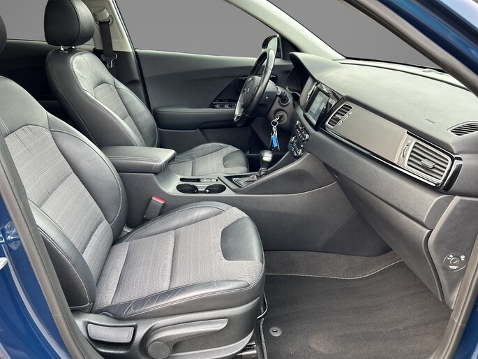 Bij het ontwerpen van de Kia Niro stonden uw comfort en uw veiligheid centraal. Deze Niro is van het bouwjaar 2018, hij heeft 101584 kilometer gelopen. Een krachtige viercilinder benzinemotor zorgt voor de aandrijving van deze SUV. Een weldaad voor u en uw bijrijder: deze Kia Niro heeft verwarmbare voorstoelen. Een heerlijk zonnetje, of indrukwekkende wolkenpartijen? Bekijk ze onbelemmerd door het elektrisch bediende glazen panoramadak. Tot de voorzieningen van deze auto behoren 18 inch lichtmetalen velgen, halflederen bekleding, LED-dagrijverlichting, donker getint glas achter, in delen neerklapbare achterbank en LED-achterlichten.